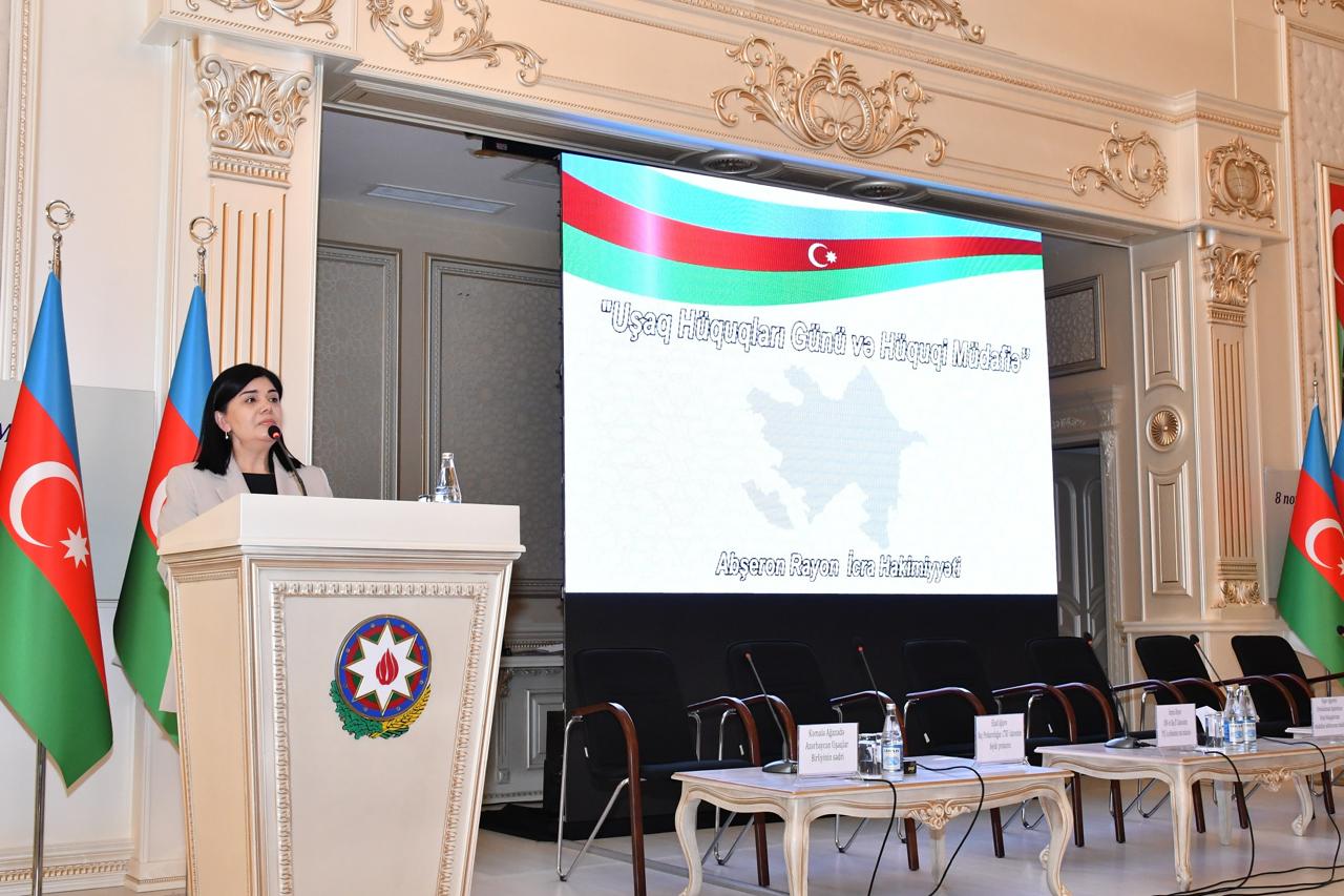 Sonra Abşeron RİH-nin Hüquq şöbəsinin müdiri, RİH yanında UHMK-nın sədri Rəşad Qubadov geniş məruzə ilə çıxış edib. O bildirib ki, hər bir xalqın, dövlətin ən böyük və qiymətli sərvəti uşaqlardır. Qeyd edilib ki, Azərbaycanda uşaq hüquqlarının müdafiəsinin tarixi 100 ildən də çoxdur. Hələ XX əsrin əvvəllərində uşaq hüquqlarının qorunması ilə bağlı dövrün maarifpərvər və xeyriyyəçiləri, sahibkarları və onların həyat yoldaşları tərəfindən bir sıra mühüm addımlar atılmışdı. O dövrdə Bakı xeyriyyə cəmiyyətinin nəzdində fəaliyyət göstərən “Uşaqlara hamilik cəmiyyəti” də mövcud olmuşdur. Bu cəmiyyətin hesabatlarında çoxlu maraqlı faktlara rast gəlmək olar. Uşaq sığınacaqlarının materiallarının təhlili Azərbaycan mentaliteti üçün olduqca mühüm bir faktı ayırmağa imkan verir. Azərbaycanın görkəmli ictimai xadimi Həsən bəy Zərdabi Bakı şəhər dumasının qlasnısı (deputatı) kimi yetim uşaqlara yardım məsələsinə dair çıxış edərkən, azərbaycanlı ailələrin bu xüsusiyyətini vurğulamışdı. O çıxışında bildirmişdir ki, “müharibənin iki ili ərzində sığınacaqdakı 300 uşağın arasında bir nəfər də olsun azərbaycanlı balasına rast gəlinməmişdi. Bu faktı onunla izah etmək olar ki, azərbaycanlılarda yetim uşaqlar qohumları tərəfindən himayə altına alınıb tərbiyə olunurdu və heç vaxt yetimxanaya, yaxud da sığınacaqlara verilmirdi”.