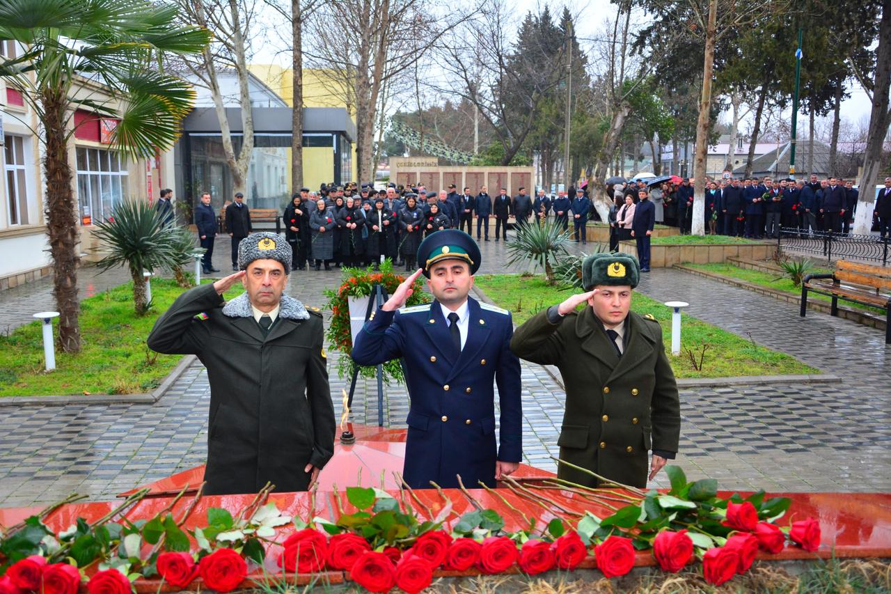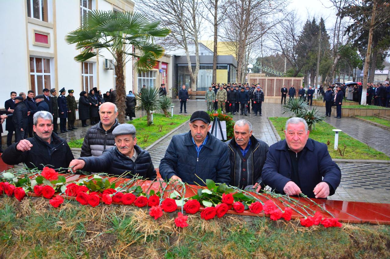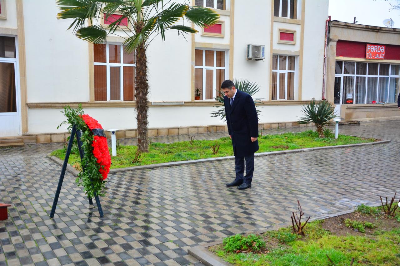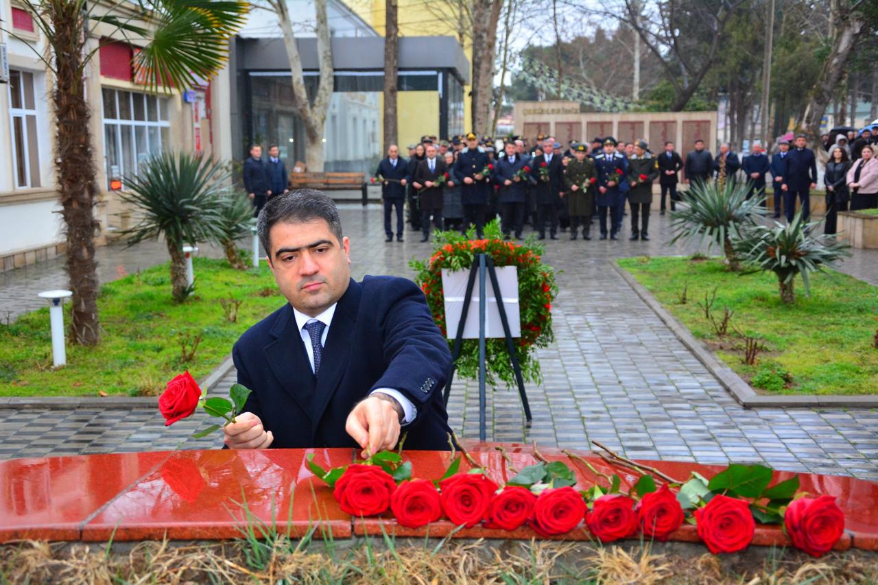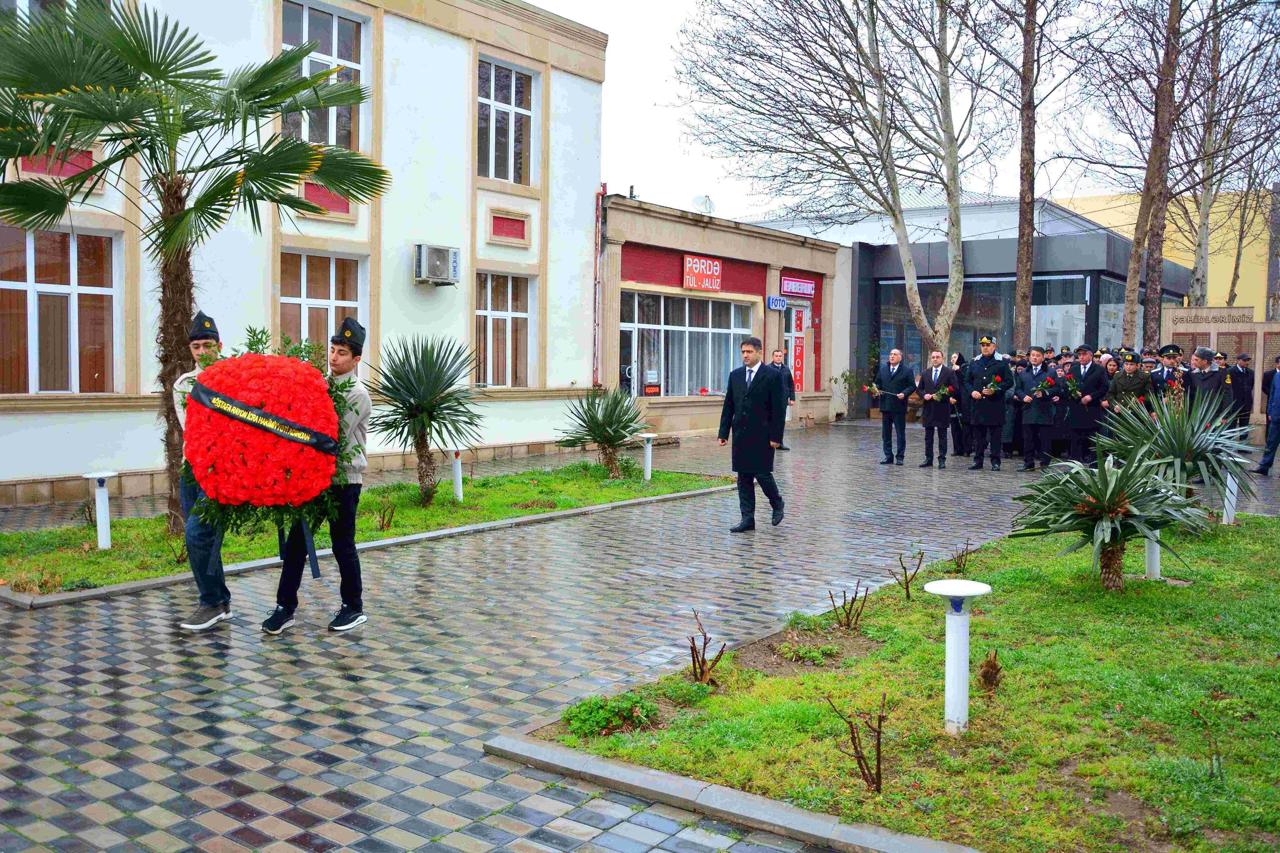 Memorail kompleksin əbədi məşəli önünə əklil qoyulub, müqəddəs üçrəngli bayrağımızın üzərindəki ayparanı simvolizə edən abidənin üstünə qızılgül və tər qərənfillər düzülüb.
