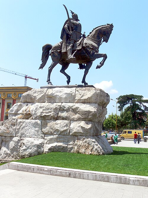 Albaniyanın paytaxtı Tirana şəhərində ucaldılmış heykəl ölkənin milli qəhrəmanı sayılan Gjergj Kastrioti Skanderbeqə məxsusdur. Tarixdə Skanderbeq adı ilə tanınan bu sərkərdə XV əsrdə Osmanlı imperiyasına qarşı uzunmüddətli mübarizə aparması ilə yadda qalıb.