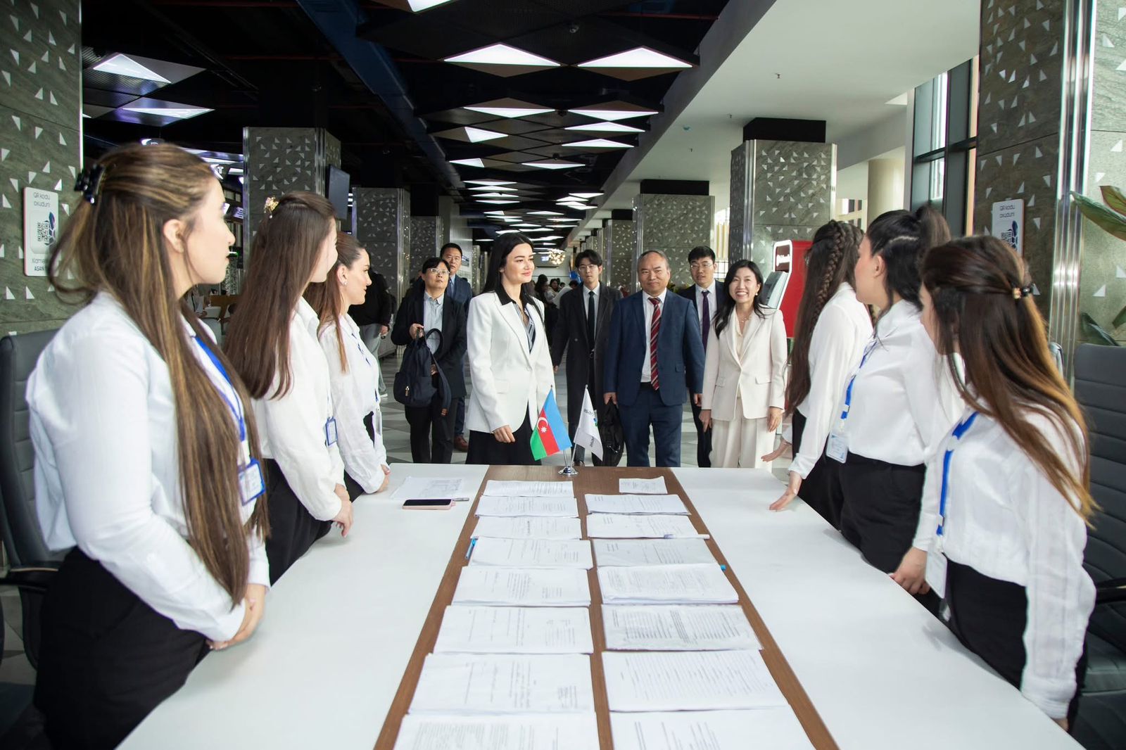 Onlara Prezident İlham Əliyevin təşəbbüsü əsasında yaradılmış “ASAN xidmət” mərkəzləri və dövlət xidmətlərində tətbiq olunan innovativ həllər barədə məlumat verilib, hazırda Azərbaycanın intellektual brendinin 30-dan çox ölkəyə ixrac edildiyi diqqətə çatdırılıb.