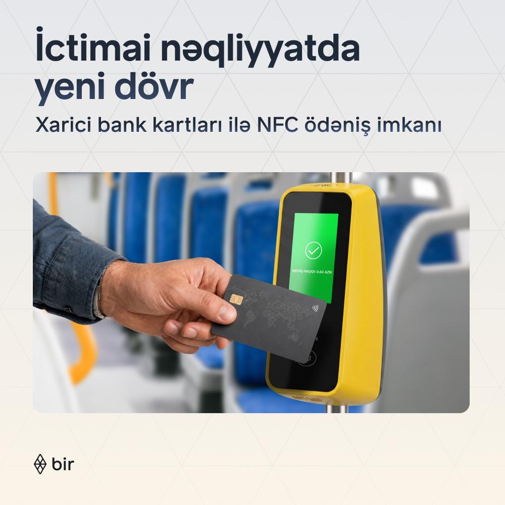 Qafqazın bankçılıq, ödəniş sistemləri və elektron ticarəti özündə birləşdirən ilk tam rəqəmsal inteqrasiya olunmuş ekosistemi olan Bir, ictimai nəqliyyatda xarici emissiyalı bank kartları ilə təmassız əsaslı ödəniş (NFC) imkanını istifadəyə verib.