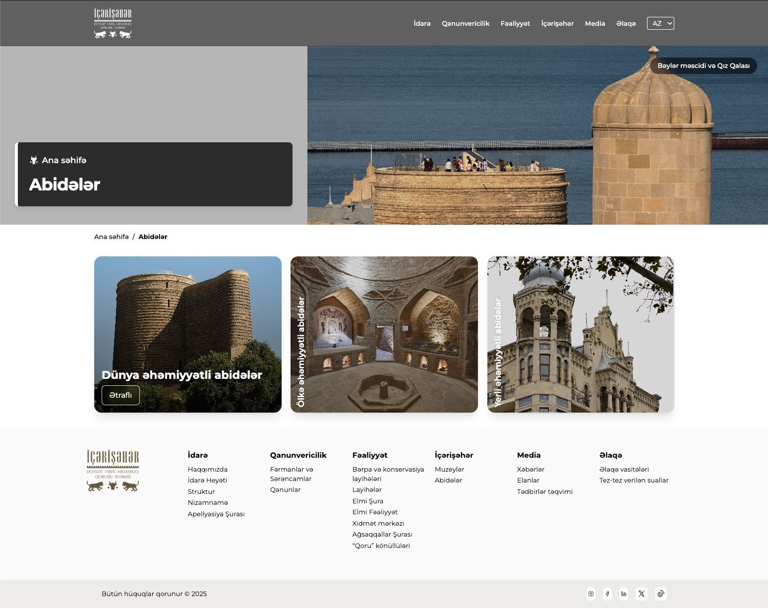 “İçərişəhər” Dövlət Tarix-Memarlıq Qoruğu İdarəsi müasir texnologiyalar əsasında hazırlanmış yeni rəsmi veb-saytı ictimaiyyətin istifadəsinə verib. Həm funksionalığı, həm də dizayn baxımından innovativ tələblərə uyğunlaşdırılaraq proqram təminatı və tərtib olunan alqoritm əsasında yenilənən saytda müasir iş prinsipləri və yeniliklər tətbiq olunub. Belə ki, sözügedən internet səhifəsində abidələr və muzeylər üzrə ətraflı və strukturlaşdırılmış məlumat bazası və həmçinin İçərişəhər ərazisində baş tutacaq tədbirlər haqqında müasir təqvim sisteminə əsaslanaraq tam və aktual məlumat bazası yerləşdirilib. Hər bir istifadəçi təqvimə keçid edərək tədbirlərin formatından asılı olaraq maraq doğuran proqramda iştirak edə, gələcək layihələr haqqında məlumat əldə edə bilər. Yeni sayt sadə və müasir interfeysi sayəsində istifadəçilərə məlumatlara asan və sürətli çıxış imkanı yaratması ilə yanaşı çoxdilli dəstək funksiyası saytı Azərbaycan və ingilis dillərində istifadə oluna bilən əlçatan platformaya çevirir.