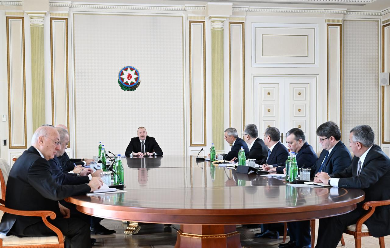 Prezident İlham Əliyev müşavirədəki çıxışında deyib: “Bu gün dünyada iqlim dəyişikliyi ilə bağlı ciddi narahatlıq hökm sürür. Bir çox ölkələr artıq bundan ciddi zərər görür. Bizim su təhlükəsizliyimizlə bağlı olan bütün məsələlər sistem şəklində öz həllini tapır. Qeyd etdiyim kimi, son 20 il ərzində ancaq sadaladığım, – halbuki görülən işlər qat-qat çoxdur, – layihələr onu göstərir ki, əgər vaxtında bu addımlar atılmasaydı, bu gün su təhlükəsizliyimizlə bağlı olan məsələlər bizim üçün çox ciddi problemlər yarada bilərdi. Bizim məqsədimiz isə əhalini və sənayeni, kənd təsərrüfatını dayanıqlı su ilə təmin etməkdir, su mənbələrini qorumaqdır, su anbarlarının potensialını artırmaqdır, uçotu tam yaratmaqdır və mövsüm gələndə suları yığmaqdır ki, sonra il boyunca onlardan istifadə edək”.